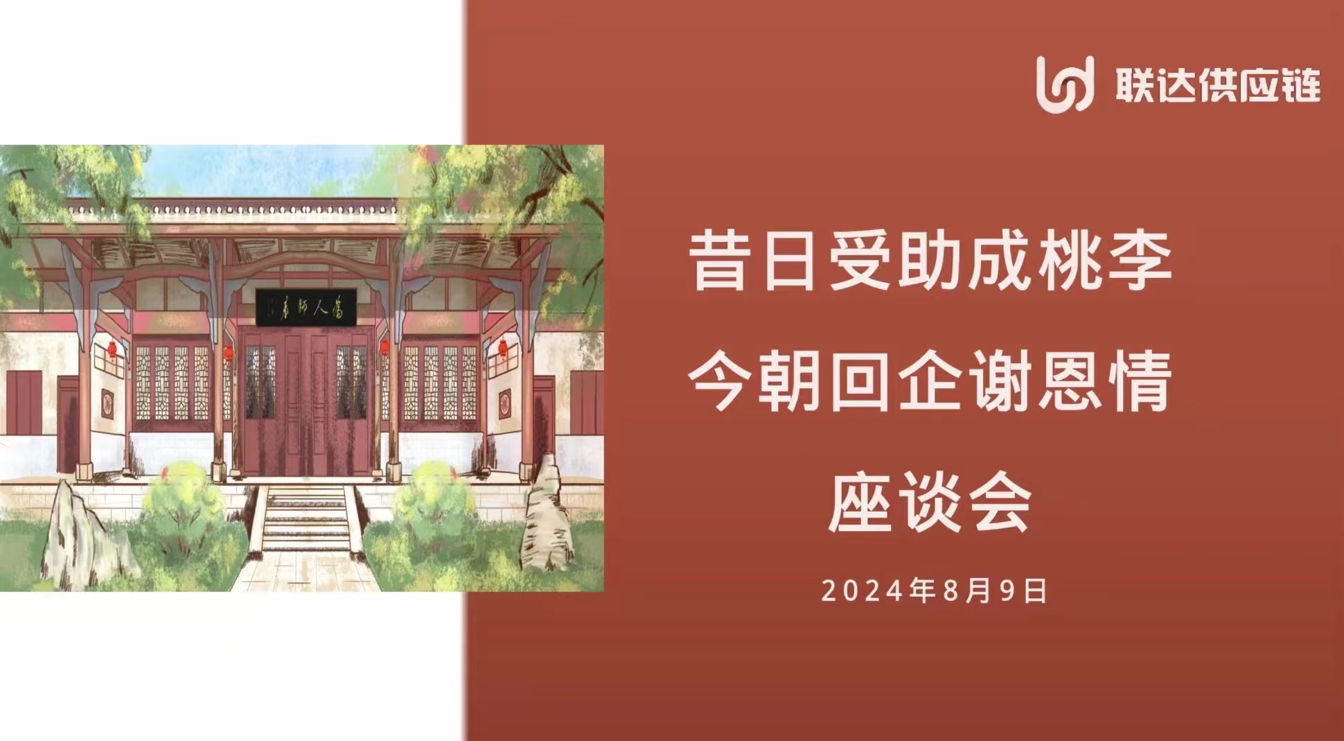 2024年8月9日,联达供应链科技有限公司举办了主题为“昔日受助成桃李,今朝回企谢恩情”的座谈会,庆祝成长的杰出学子,激励员工发扬奉献精神。活动源于2013年7月宝山区政协与宝山区物流协会合作推动扶贫行动,促成深厚情谊。宝山区交通运输协会相关人员参会,共同见证感人时刻。